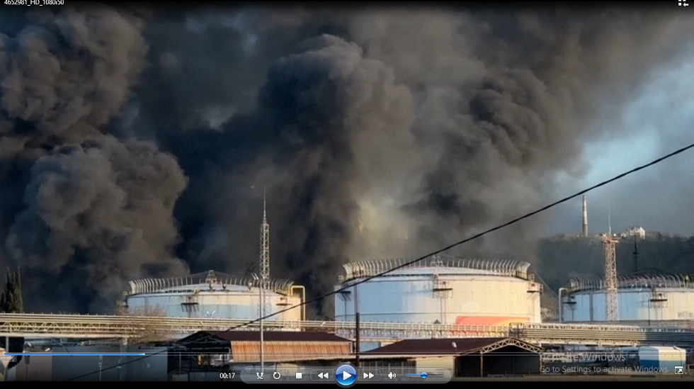 Fire burning at oil refinery in Russian Black Sea port following drone attack